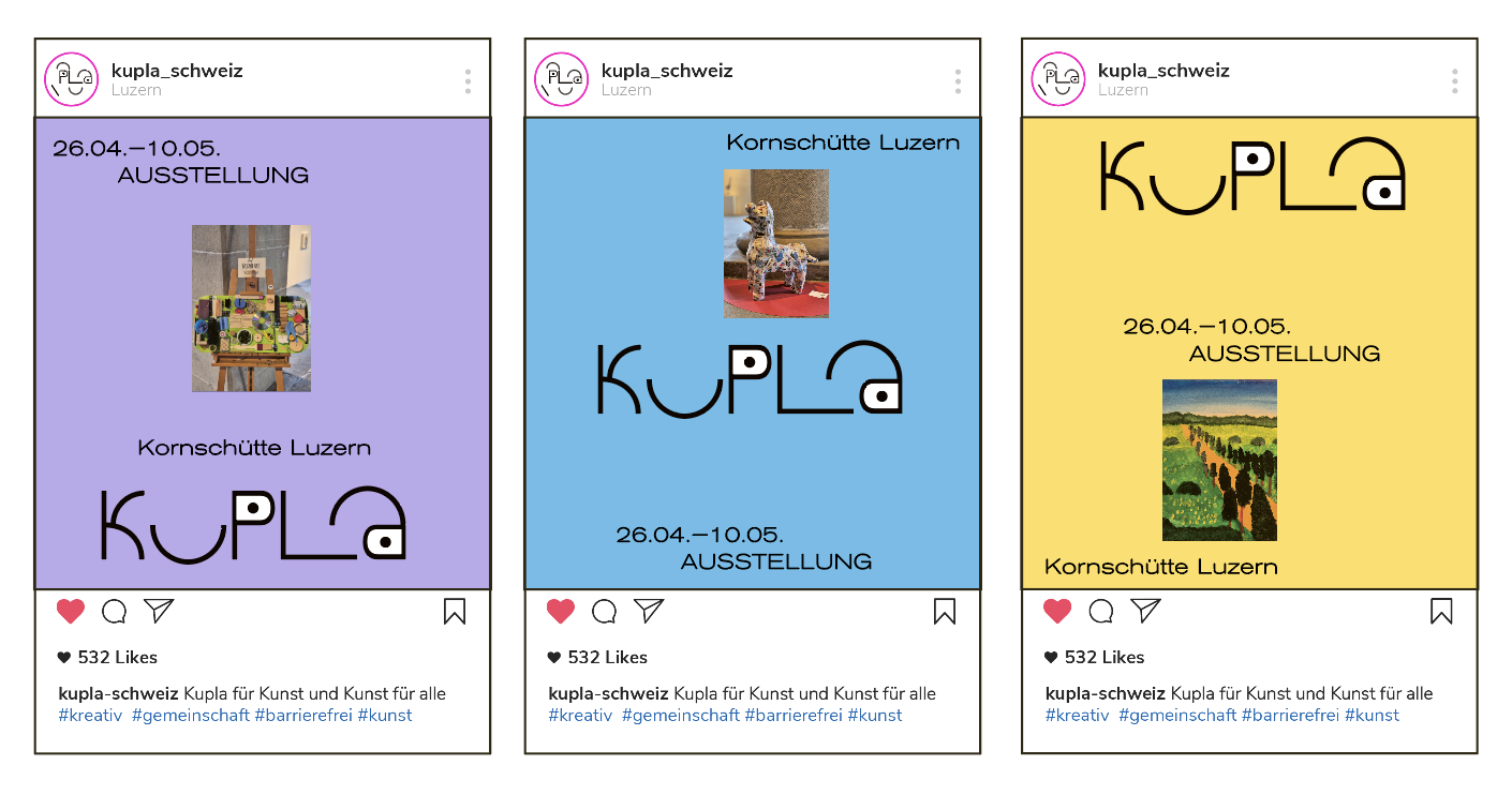 Ein Pitch Versuch für eine inklusive Platform mit Herz! Inspiriert von den drei Musketieren (sowie dem dreier Bündnis der Stiftung SSBL, Rodtegg und der Contenti, welches dies möglich machen.) Das entwickelte Logo eine Bild-Wort-Marke verwandelt sich in ein verspieltes Gesicht und bringt uns die Message: Kupla für Kunst und Kunst für alle!